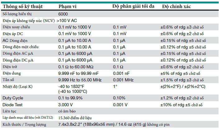 • Độ chính xác DCV cơ bản ± 0,6%